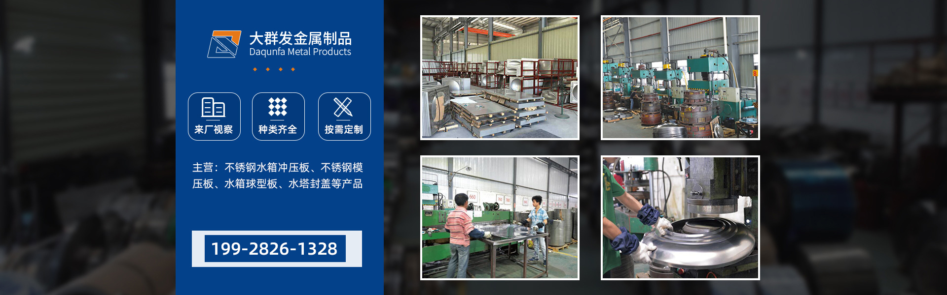佛山市大群發(fā)金屬制品有限公司是一家集不銹鋼生產(chǎn)、加工、銷售于一體的大型龍頭企業(yè),座落于交通便捷的廣東省佛山市陳村鎮(zhèn)廣隆工業(yè)區(qū)。專業(yè)從事不銹鋼材料,主要有不銹鋼圓形水塔封蓋、不銹鋼方箱沖壓板、不銹鋼卷板、平板的生產(chǎn)批發(fā)和銷售,常年庫存量大,價(jià)格優(yōu)惠!材質(zhì)主要有:優(yōu)質(zhì)的304、201不銹鋼材料精制而成。